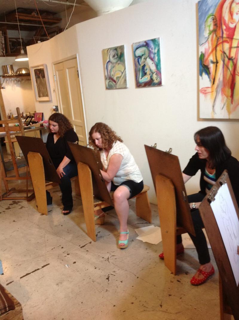 We provide a supportive work environment with great models and a relaxed friendly atmosphere. Drawing horses, drawing boards, large work tables and easels are available.