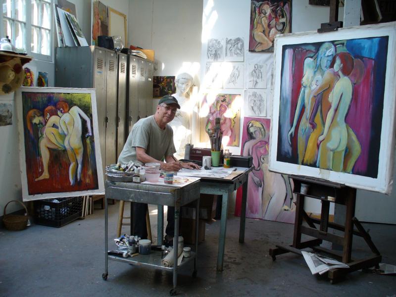 image of Robert working in the studio as a resident artist of The Arts Students League of New York at the Vytlacil campus in the Hudson River Valley